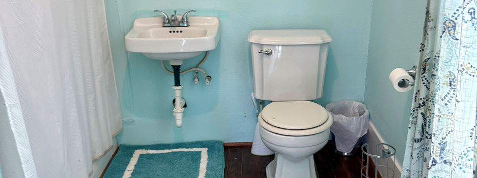 There is a one full bathroom with a stand-up shower. Please note: the bathtub is ornamental.
